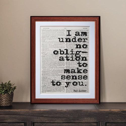 Alice In Wonderland Mad Hatter Quote Dictionary Page Art Print Etsy